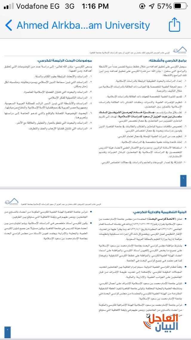تدشين كرسي “خادم الحرمين الشريفين للدراسات الإسلامية” بجامعة القاهرة تشهد جامعة القاهرة، يوم الاثنين المقبل، عبر تقنية الفيديو كونفرانس، مراسم تدشين كرسي “خادم الحرمين الشريفين الملك سلمان بن عبد العزيز آل سعود للدراسات الإسلامية”، وذلك تحت إشراف جامعة الإمام محمد بن سعود الإسلامية.
